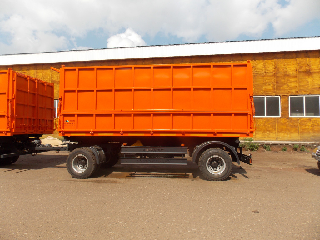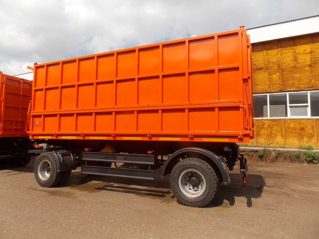 Исполнение задней части: верхний борт глухой, нижний борт подвижный с верхней навеской, исполнение задней части может быть исполнена по выбору заказчика , возможность установки распашных ворот, люка под зерномёт, с открывающимися бортами с верхней навеской в нижней части ворот. Пол стальной.