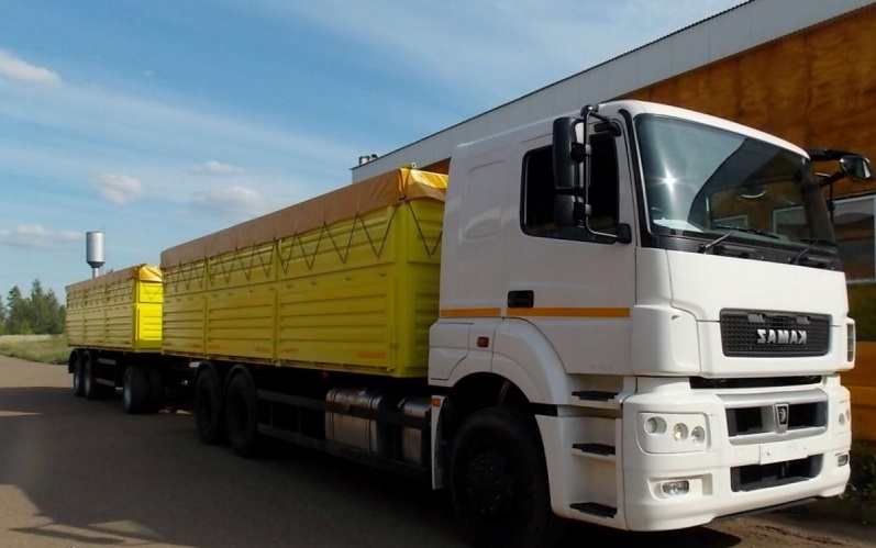Автомобиль зерновоз на базе шасси Камаз 65207 с прицепом.